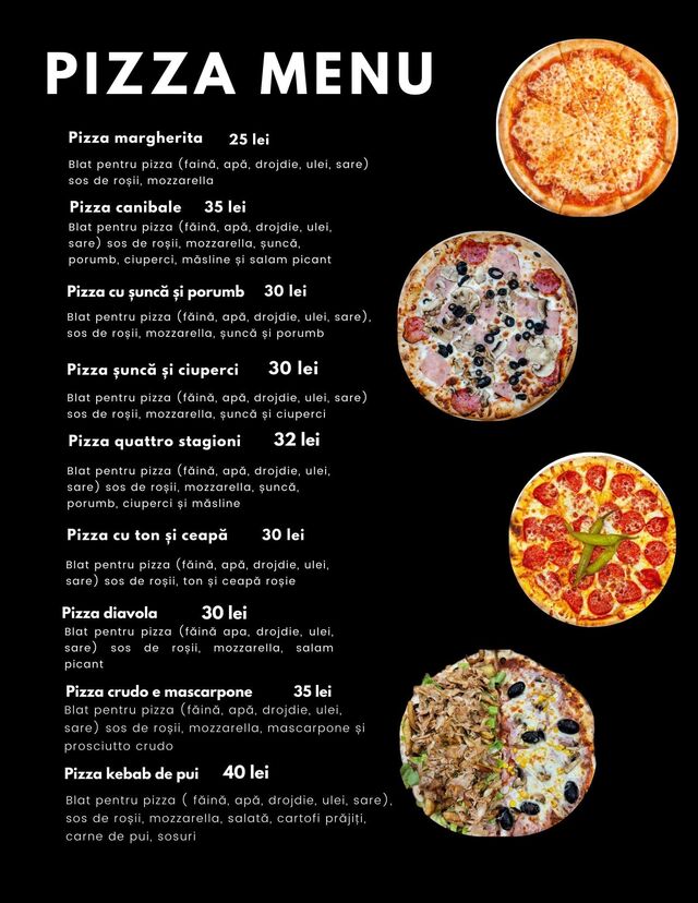 La Hot Fast Food din Sânmartin, Oradea, pizza este pregătită cu un aluat pufos și crocant, ingrediente proaspete și brânză din belșug. Fie că preferi o pizza clasică, cum ar fi Margherita sau Quattro Stagioni, sau una specială, cu combinații inedite de toppinguri, fiecare felie îți oferă un gust autentic și savuros. Coaptă perfect și aromată, pizza de la Hot Fast Food este alegerea ideală pentru o masă delicioasă alături de familie sau prieteni.